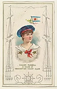 Lillian Russell in Colors of Manhattan Yacht Club, from the Yacht Colors of the World series (N140) issued by Duke Sons & Co. to promote Honest Long Cut Tobacco