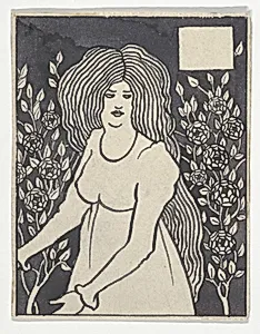 Long-haired Woman in Front of Tall Rosebushes (Chapter Heading, "Le Morte d'Arthur," J. M. Dent, 1893–4, Part IX, book xiii, chapter viii, p. 700, and Part XII, book xxi, chapter viii, p. 972)
