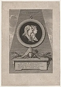 This delicate etching and engraving on laid paper captures a poignant moment with King Louis XVI, Queen Marieoinette, and their young Dauphin, Louis-Charles, rendered in the style of French 18th-century portraiture. Created in the late 18th or early 19th century an anonymous French artist after designs by Piat Joseph Sauvage and Augustin de Saint-Aubin, it exemplifies the era's reproductive printmaking, which allowed royal images to circulate widely among the public despite political upheaval. The print's timing aligns with the French Revolution (1789–1799), a period when depictions of the Bo...