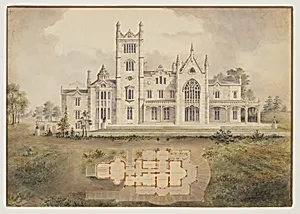 Lyndhurst for George Merritt, Tarrytown, New York (west [rear] elevation and plan)