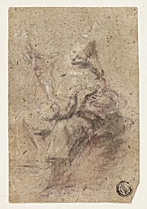 Black chalk and brush and brown and red wash, heightened with lead white (partially discolored), on tan laid paper