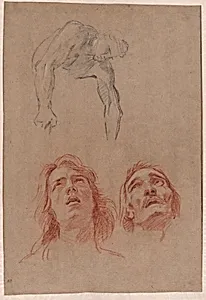 Jean-Baptiste Jouvenet, prominent French Baroque artist (1644–1717), created *Man Reaching Down and Two of Heads (recto before 1698. This preparatory drawing exemplifies the studies favored by painters of the Académie Royale, where Jouvenet served as a leading figure. Working in the grand style of history painting influenced by masters like Rubens and Charles Le Brun, Jouven often produced such sketches to refine poses and expressions for larger commissions, capturing the dramatic energy of the era under Louis XIV. Executed in and black chalks heightened with white on brown paper, the sheet m...
