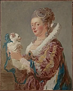 Jean Honoré Fragonard *Marie Emilie Coignet deson (1716–1806) with a Dog* (ca. 1769) captures the elegance of an aristocratic sitter in oil on canvas, a medium favored for its luminous depth and ability to convey texture in 18th-century portraiture At 32 x 25 3/4 inches, this work from the Metropolitan Museum of Art Fragonard’s Rococo style—playful, sensual, and with a lighthearted intimacy that defined the final flourish of the French ancien régime. Painted when Marie Emilie was in her fifties, the portrait features her with a loyal dog, a motif symbolizing fidelity and refinement among the nobility. Fragonard’s signature loose brushwork and vibrant palette bring a sense of immediacy and charm, softening the formality of traditional portraiture with Rococo’s emphasis on pleasure and emotion. This piece reflects the cultural vogue for companion animals in elite circles, blending personal affection with displays of status just before the upheavals of the Revolution. Acquired through the Fletcher Fund in 1937, it invites visitors to savor the fleeting grace of pre-Revolutionary France, where art celebrated life’s joys amid brewing change.