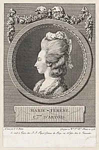 This delicate etching and engraving from 1778 captures Marie-Térèse, Countess of Artois, a classic profile portrait,oking the poised elegance of French aristocracy on the eve of the Revolution Created by a collaborative team—Jean Jacques Flipart, Marie Louise Adélaïde Boizot, and Simon Boizot—the showcases the era's refined printmaking techniques. Etching allowed for fluid, expressive lines, while engraving precise detailing, making high-quality reproductions accessible beyond oil paintings. The profile view, reminiscent of ancient Roman coins and medallions, was a fashionable choice in late ...