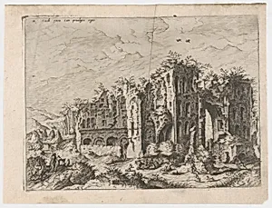 Massive Ruins with Many Figures in the Foreground, from "Roman Ruins and Buildings"