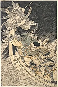 Minamoto Yoshitsune and His Retainer, the Monk Benkei, Putting to Flight the Ghost of Taira no Tomomori