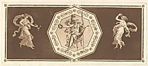 Minerve assisse dans un octagone décoratif, avec une figure à gauche et à doroite (la Nuit et le Jour?) (Minerva seated within an octagonal border, wth a figure at the right and at the left (Night and Day?), from Recueil de Différentes Compositions Frises et Ornements dessinées et gravées à la manière du lavis par La Grenée le Juene Se trouve chez l'Auteur, au Louvre et chez Basan, rue et Hôtel Serpente A Paris, in an album containing Recueil de Compositions par Lagrenée Le Jeune (Collection of Compositions by Lagrenée the Younger)