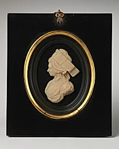Colorless wax on black ground; frame: wood with brass mounts and glass