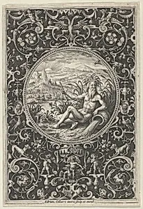 Neptune in a Decorative Frame with Grotesques, from the Judgment of Paris