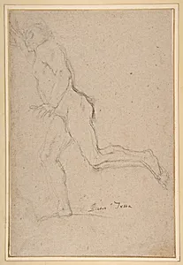 Nude Youth Running (recto); Standing Draped Old Man with Left Hand Upraised (verso)