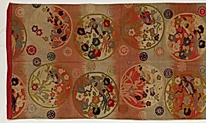 花丸鳥模様丸帯|Obi with Repeating Floral Roundels and Birds