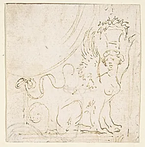 Ornamental Design with a Sphinx Bearing a Vessel on Her Head.