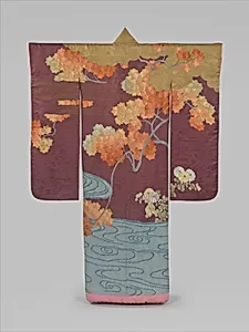 紫綸子地龍田川模様打掛|Outer Robe (Uchikake) with Maple Tree and River