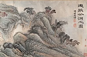 In the serene world of Qing dynasty art, Shitao (Zhu Ruoji, 1642–1707), one of China's revered "Four Monks," a poetic outing to Zhang Gong Grotto in this exquisite handscroll from around 1700. Rendered in ink and color on paper, the work unfolds horizontally over nearly 10 feet, inviting viewers to unroll it slowly like a personal journey through mist-shrouded mountains, ancient trees, and rocky caverns. Shitao's innovative brushwork—bold, expressive strokes that defy rigid traditions—brings the landscape to life, blending delicate washes of color with dynamic ink lines to evoke the Daoist har...
