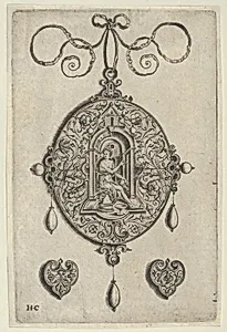 Oval-Shaped Pendant Design with Hebe Seated under a Niche