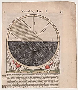 Woodcut with hand coloring in brown, green and red and letterpress text on verso.