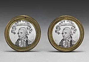 Pair of mirror knobs with depiction of General Washington