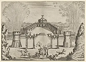 Pantomime with fireworks performed for the marriage of Emperor Leopold I to the Infanta Margarita of Spain in Vienna, 1666