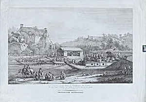 In 1805, French printmaker Jean-Jacques de Boissieu captured a majestic riverside procession in *Papal Promenade Along the Saône*, an etching that evokes the grandeur of early 19th-century France. The scene unfolds along the Saône River in Lyon—Boissieu's hometown—depicting a papal barge gliding through the water, surrounded by boats and spectators. This third and final state of the print reflects a pivotal moment: likely Pope Pius VII's visit to Lyon that year, during his travels amid the Napoleonic era, blending religious pomp with the era's political tensions. Boissieu, a master of intrica...