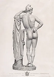 Paris leaning on tree stump, back view, from "Oeuvre de Canova: Recueil de Statues..."