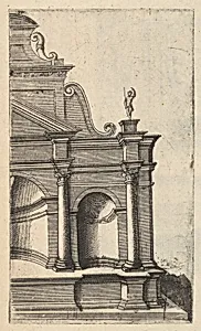 Partial View of a Monument [Mercurii Templum] from the series 'Ruinarum variarum fabricarum delineationes pictoribus caeterisque id genus artificibus multum utiles' by Monogrammist G.A. & the Caltrop|Lambert Suavius|Gerard de Jode