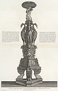 Perspective view of the same candelabrum, from "Vasi, candelabri, cippi, sarcofagi, tripodi, lucerne, ed ornamenti antichi disegnati ed incisi dal Cav. Gio. Batt. Piranesi, Vol. II" (Vases, candelabra, grave stones, sarcophagi, tripods, lamps, and ornaments designed and etched by Cavalieri Giovanni Battista Piranesi)
