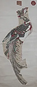 Behold the majestic *Phoenix (Fenghuang)*, a captivating ink and color on paper painting from China's Ming (1368–4) or Qing (1644–1911), now housed in the Metropolitan Museum of Art Asian Art Department. Measuring an impressive 28 x 66 inches, this framed work by an unidentified artist showcases the mythical fenghuang with elaborate plumage and graceful form, brought to life through sophisticated brushwork and vibrant application. The bird's composite features—drawn from various real species—exemplify the Chinese aesthetic of harmonious idealization. In Chinese culture, the fenghuang symbolizes profound virtues: grace, prosperity, and the balance of yin and yang. Often paired with the dragon (representing the emperor), it evokes the empress and imperial harmony, distinct from the Western phoenix's fiery rebirth. Bright yellow background elements hint at possible imperial associations, reserved for works tied to the throne. A gift to the Met in 1941 from C. Edward Wells, this enduring motif graces Chinese paintings, textiles, ceramics, and architecture, underscoring the fenghuang's timeless role in celebrating auspicious unity.