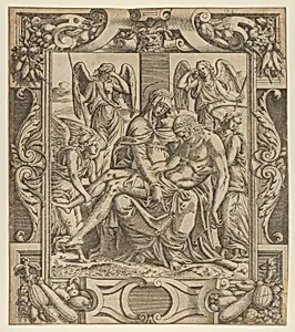 Pietà in an Ornamental Frame by Jean Mignon|Luca Penni