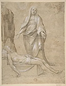 Pieta (recto); Madonna and two Cherubs in pen and brown ink; copy of a drawing in the Louvre which is attributed to Raphael (verso)