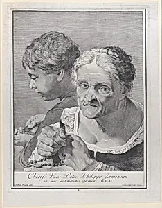 Plate 10: Old woman with a rosary and a boy counting coins; from 'Icones ad vivum expressae' after Giovanni Battista Piazzetta
