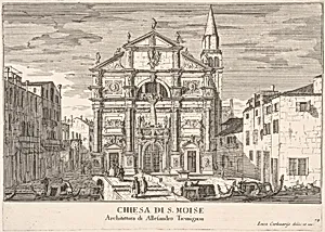 Plate 14: View of the facade of St. Moses church, Venice, 1703, from "The buildings and views of Venice" (Le fabriche e vedute di Venezia)