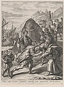 Plate 17: Aeneas welcomed by King Euandrus in Italy; from Guillielmus Becanus's 'Serenissimi Principis Ferdinandi, Hispaniarum Infantis...'