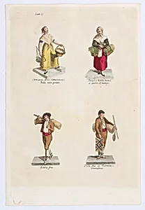 Plate 17: four street vendors from Madrid selling parsley, mats etc, from 'Los Gritos de Madrid' (The Cries of Madrid)