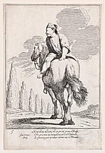 Plate 19: Cacasenno riding a horse backwards, from "Bertoldo, Bertoldino, and Cacasenno"