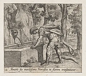 Plate 28: Narcissus at the Well (Amore fui inardescens Narcißus in florem transmutatur), from Ovid's 'Metamorphoses'