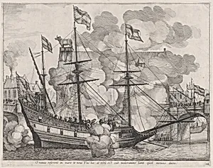 Plate 38: Triumphal ship with the city of Ghent in the background; from Guillielmus Becanus's 'Serenissimi Principis Ferdinandi, Hispaniarum Infantis...'