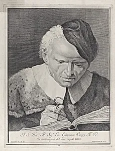 Plate 8: Man in a hat reading a book with a magnifying glass; from 'Icones ad vivum expressae' after Giovanni Battista Piazzetta