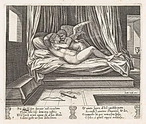 Plate 9: Cupid and Psyche on a bed, from "The Story of Cupid and Psyche as told by Apuleius"
