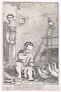 Plate 9: Marcolfa finds Bertoldino hatching eggs, from "Bertoldo, Bertoldino, and Cacasenno"