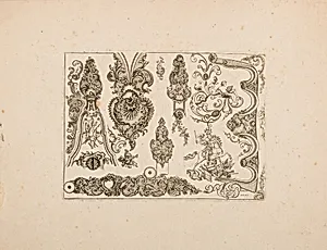 Step into the ornate world of 18th-century French arms design with *Plate Nine from Nouveaux Dessins d'Arquebusiers* by Gilles Demarteau, an exquisite engraving dated 1743. Created in Paris during the lavish Rococo era, this work belongs to a series of innovative patterns for decorating arquebus stocks—early firearms carried by soldiers and hunters. Housed in the Metropolitan Museum of Art's Arms and Armor Department, it measures a compact 11 3/4 x 9 1/8 inches on the sheet, showcasing Demarteau's mastery as a pioneering engraver known for his precise reproductive techniques. Demarteau, a lea...