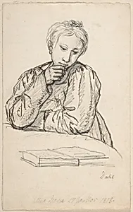 Portrait of Eline Marie Heger as a Child, Leaning on a Table, Looking at a Book