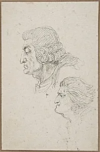 In the turbulent final days of the French Revolution's Reign Terror, Baron Dominique Viv Denon captured a haunting moment with this black chalk sketch. Dated April 12, 1794, it depicts the profiles of two condemned men en route to the guill: Jean-Baptiste-Joseph Gobel, the revolutionary Bishop of Paris who had publicly renounced Catholicism in 3, and Pierre-Gaspard Chaette, the radical Procurator of the Paris Commune and fierce advocate for de-Christianization. Executed amid the Thermidorian Reaction against extremists, their fates underscored the Revolution's violent purges. Denon, a versati...