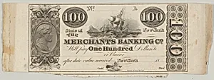 Proof of one side of a New York Merchants Banking Company 100 Dollar Bill