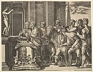 **Master of the Die** (fl. 1525–1560) was an anonymous Italian engraver and printmaker active primarily in Rome during the mid-16th century. Named for the distinctive small die he used to sign his prints—a tiny emblematic mark that became his moniker—this elusive artist remains unidentified despite scholarly proposals linking him to figures like Benedetto Verino, Giovanni Francesco Zabello, Tommas...