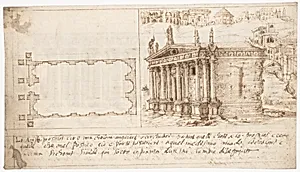 Recto: Temple Types: Amphiprostyle (Vitruvius, Book 3, Chapter 2, no. 4); Verso: Temple Types: Pseudodipteral (Vitruvius, Book 3, Chapter 2, no. 6).