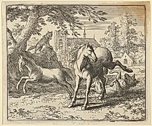 Renard Goes with the Badger to Court to Appease the Lion's Anger from Hendrick van Alcmar's Renard The Fox