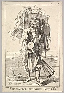 Reverse copy of A Racomoder les Vieux Souflets (Mend the Old Bellows), from Le Cris de Paris (The Cries of Paris), plate 3