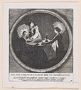 Reverse Copy of Le Benedicite, estampe appelée aussi La Sainte Famille a Table et St. Joseph Faisant Boire L'Enfant Jésus (The Grace, also called The Holy Family at the Table and St. Joseph Giving the Christ Child a Drink)