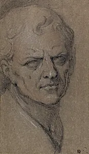 Black chalk, heightened with white and red chalk, on brown laid paper, laid down on ivory laid paper