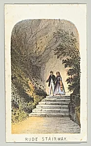 Step into the nascent greenery of 1860s New York with *Rude Stairway, the series, Views in Park, New York, 2*, a charming color lithograph produced by Louis Prang & Co. in 1864. This print (just 4 × 2⅜ inches) captures a rustic stairway amid the park's early landscapes, likely featuring men and women strolling or ascending its uneven steps. Central Park, opened in 1858 as a democratic oasis amid the city's bustle, symbolized urban progress and leisure during the Civil War era, and Prang's series documented its allure for a growing middle class. Louis Prang, a German-born innovator in American...